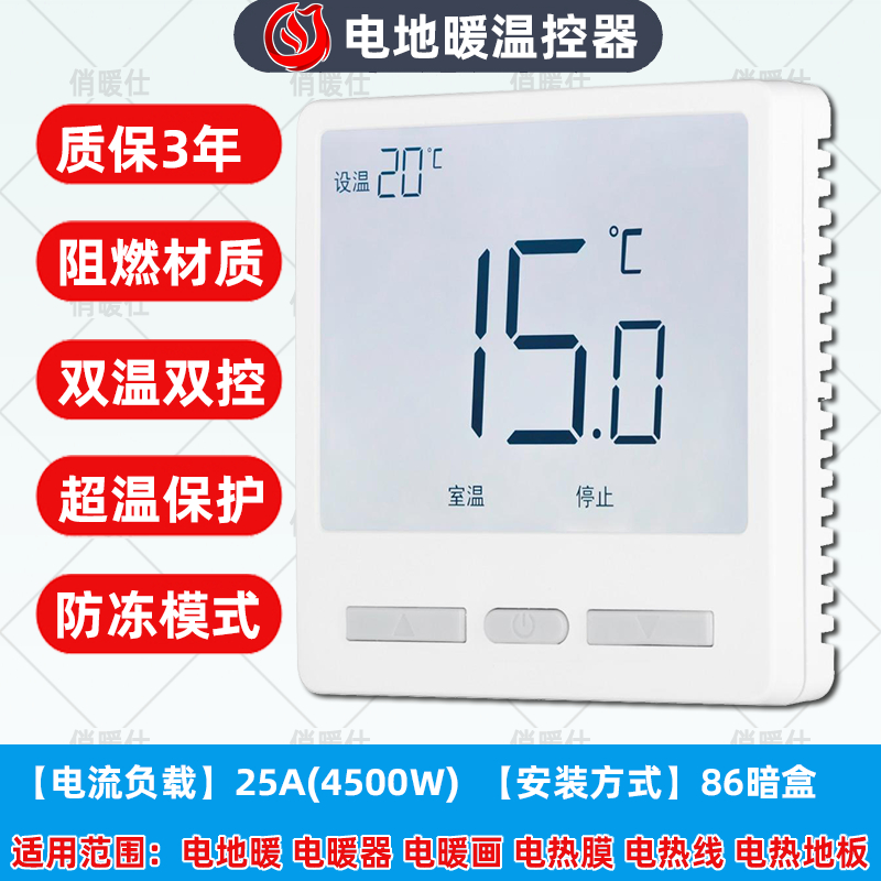 KZQ-6617【电地暖】大屏三键经典(暗装)25A温控器
