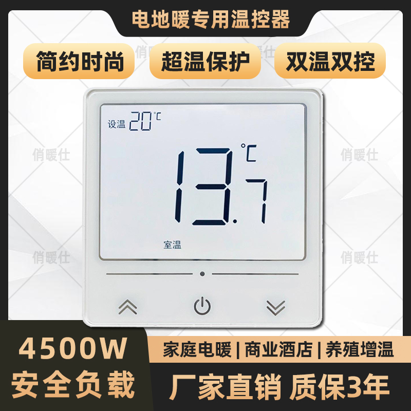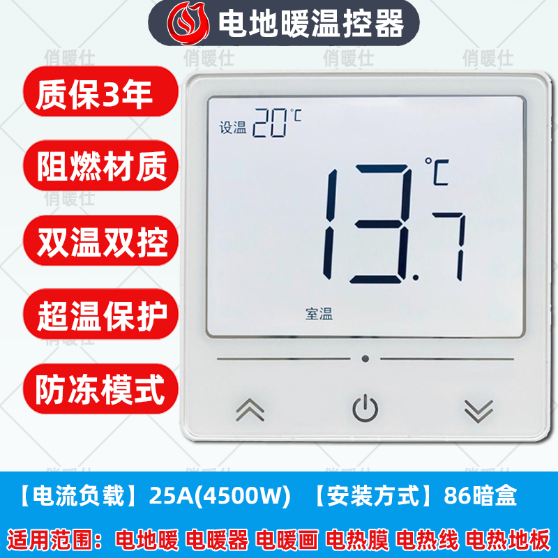 KZQ-617【电地暖】大屏三键触摸(暗装)25A温控器