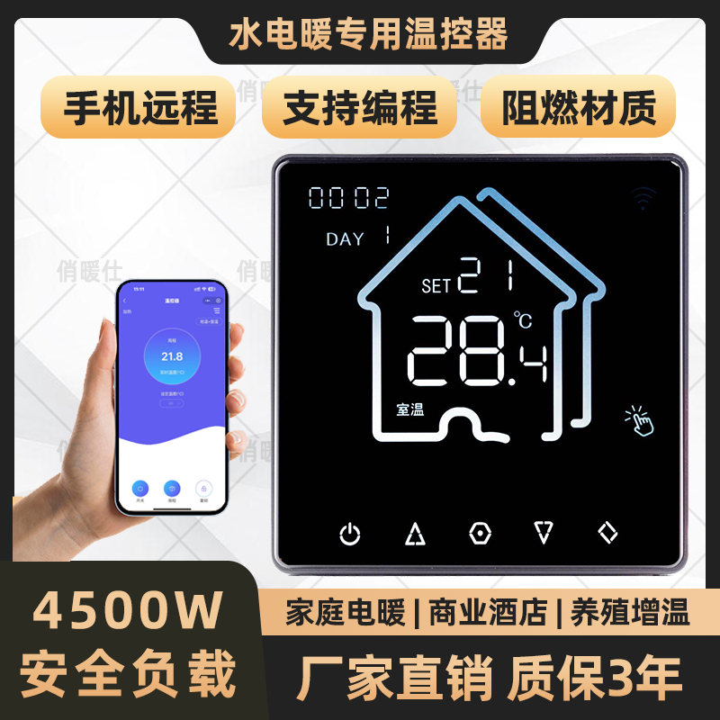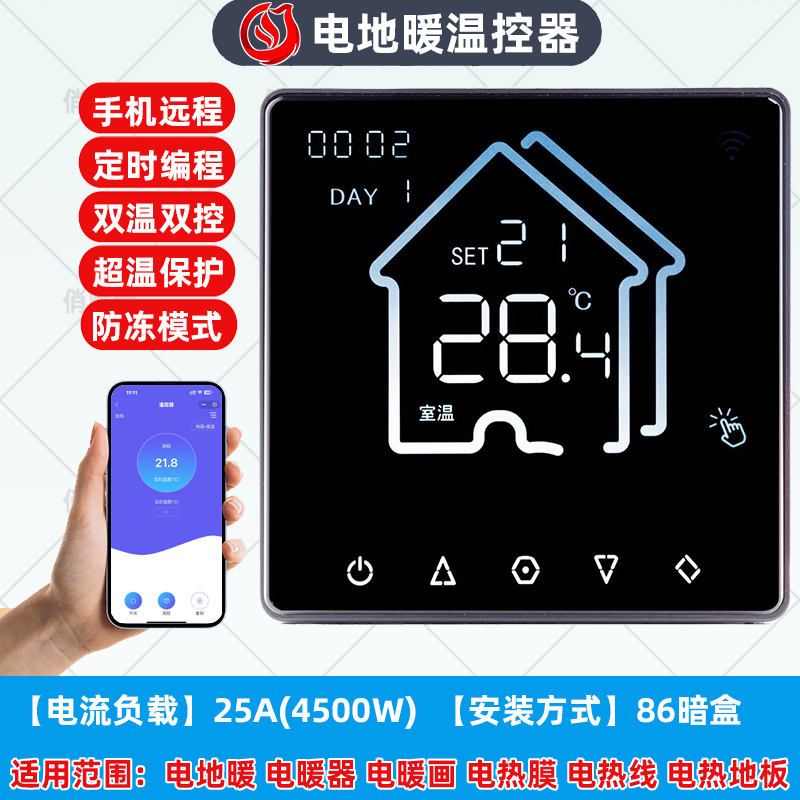 KZQ-WF10【电地暖】WIFI远程彩屏(暗装)25A温控器